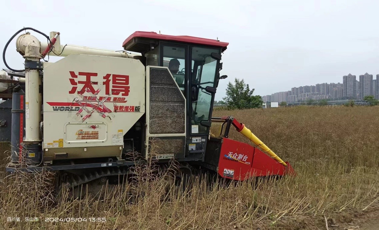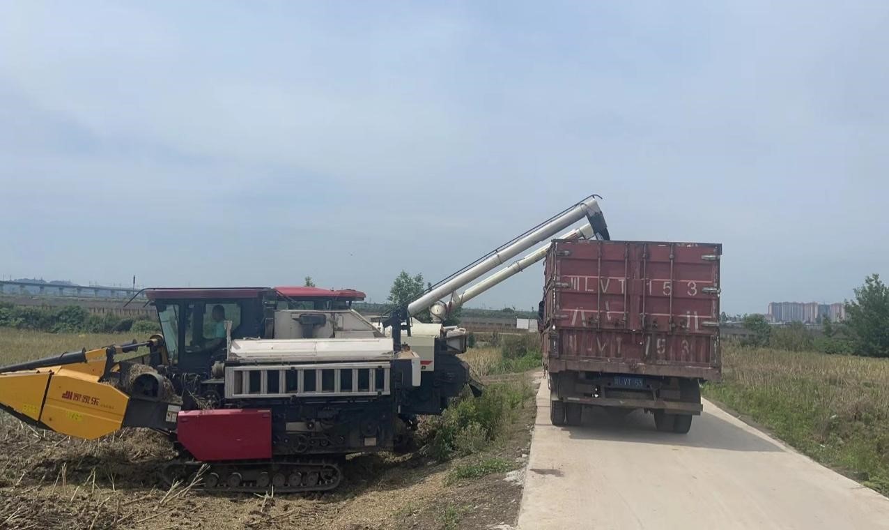 在大渡河、龙溪河流域耕地复耕区域,油菜地已换上了新装,一个多月前的“金色花海”喜变丰收地,新型联合收割机在田间穿梭,将一株株油菜快速地卷入机器,经过脱粒、清选后收入“囊中”,打碎的秸秆就地还田。与传统手工收割油菜相比,机械化收割方式不仅可以一次性完成收割、脱粒,还能实现秸秆粉碎还田,有效解决了后续秸秆处理难题,增加土壤有机质,节约农业成本。目前,1200余亩油菜已完成收割约500亩,所有油菜将于5月上旬全部完成收割,预计可采收油菜籽18万斤左右。