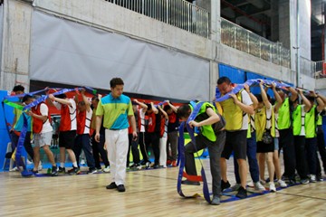 活动秉持竞技体育与趣味挑战相结合原则,设置“飞盘移行换位”“砥砺前行”“齐心协力”3个项目。现场气氛紧张热烈,队员热情高涨,各参赛小组团结一致、斗志昂扬,以默契的配合开启一场智慧与力量的比拼。现场精彩纷呈的游戏环节中,各参赛小组勠力同心、奋勇争先,营造了积极向上的团队氛围,充分展现了每个团队朝气蓬勃、锐意进取的精神风貌。